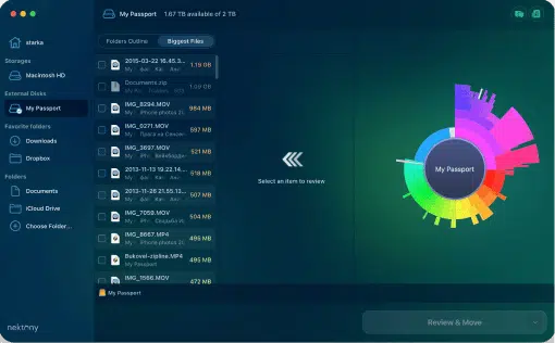 Disk Space Analyzer allows you to find the bulkiest content and free up Mac hard drive space.